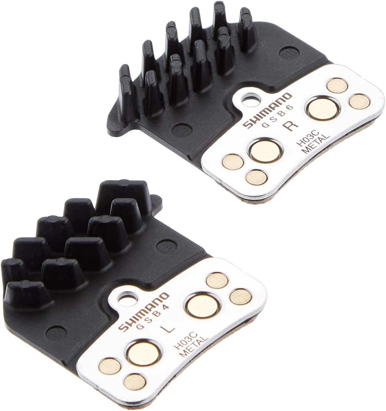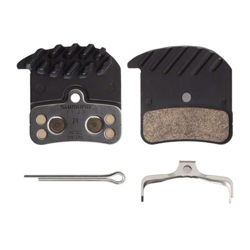 The Shimano H03C Metal disc brake pads are replacement pads that will fit your Saint M820 or Zee M640 disc brake calipers. These brake pads are made up of a metal compound which performs well in wet or dry conditions and features an aluminum radiator cooling fin which increases the life of the pad and helps reduce brake fade. Sold as a set of 2 pads, which is enough for one caliper. If you need to replace the pads on both front and rear calipers, purchase 2 sets.